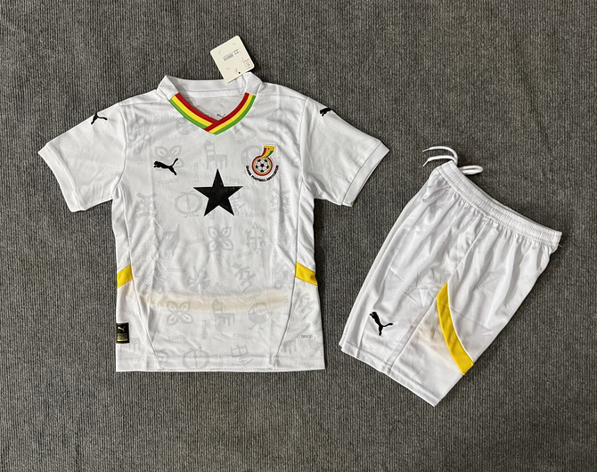 • Product Name: 2025-26 Kids Ghana home white soccer Jersey