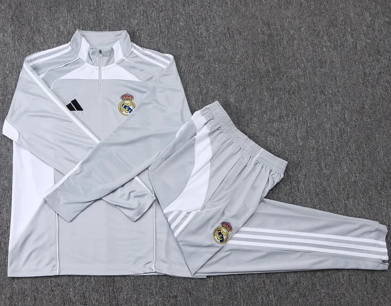 • Product Name: 2025-26 Kids Real Madrid Half-pull gray white Tracksuit #E25182