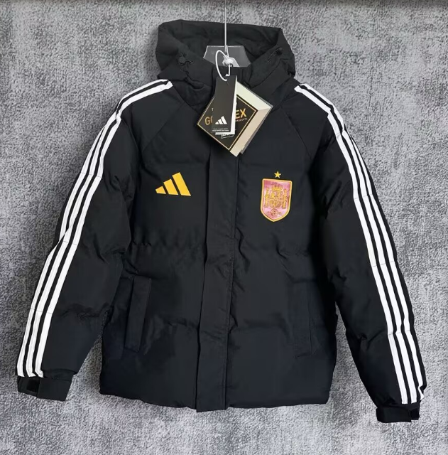 Home>National Teams>Spain>2026 Mens Spain black Hooded Cotton Coat