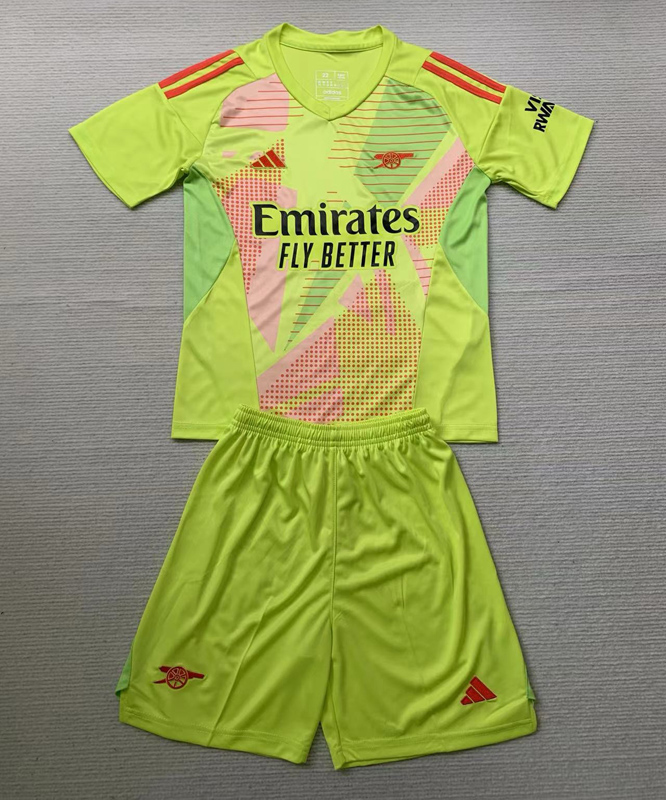Home>Premier League>ARS>Kits>24-25 ARS Fluorescent Yellow GoalKeeper Kids Soccer Jersey