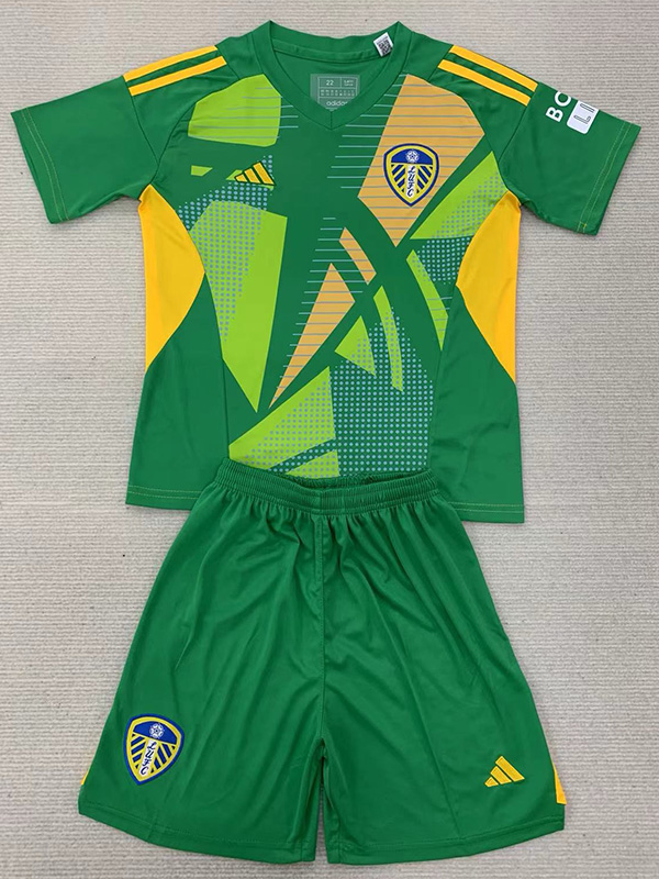 24-25 Leeds United Green GoalKeeper Kids Soccer Jersey